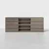 A highly functional centerpiece, made from solid, upcycled wood. The Nest Credenza anchors the room and provides space to display and stow away thanks to its thoughtful mix of shelving and drawers. Do not stack higher than 47" vertically.