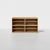 A rectangular wooden dresser with a minimalist design, featuring six horizontal drawers and a smooth, flat top, set against a plain white background.