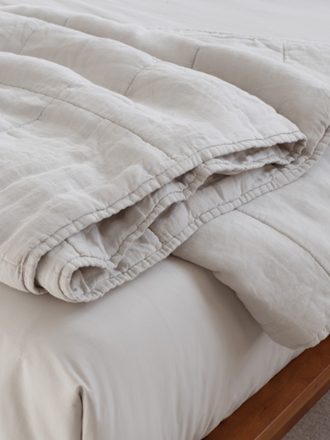 Crafted for warmth and comfort, the quilts and blankets collection brings a refined touch to the bedroom. Thoughtfully designed for year-round versatility, each piece balances breathability with a soft, inviting texture. The linen quilt set features a quilt and shams made from premium materials, offering both coziness and understated sophistication. For cooler evenings, the Midweight Terry Blanket, crafted from 100% organic cotton, provides an added layer of warmth, seamlessly complementing any setting. Match your Thuma quilts with luxury Sheet Sets or choose from the entire Bedding and Bath collection. Paired with The Classic Bed + PillowBoard or draped over the Classic Daybed, these box quilt and blanket selections enhance the bedroom’s atmosphere with subtle texture and timeless appeal. Designed with simplicity in mind, each piece transforms the everyday into a retreat worth lingering in.