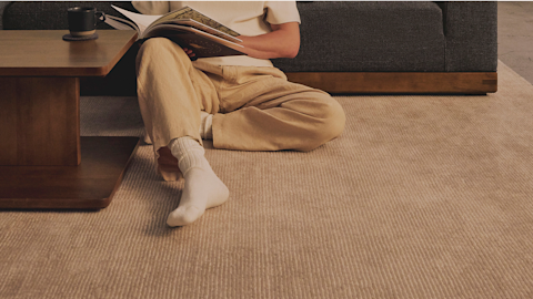 Thuma's collection of wool rugs are designed to elevate the home with warmth and texture. Handcrafted by expert artisans, wool area rugs provide exceptional softness, limited shedding, and outstanding durability. Handcrafted by expert artisans in India, each luxury rug is inherently unique. Designed with a plush pile and heathered hue, the Marbled Wool Rug is hand loomed from an innovative blend of washed wool and PET from recycled plastic bottles. The Paneled Wool Rug is made from 100% New Zealand Wool and features alternating pile heights for a distinct look and texture. Our modern wool rugs have a soft, plush feel and are fiber dyed for rich, long-lasting color. Durable, refined, and crafted for longevity, designer rugs provide a neutral yet grounding foundation for any room.