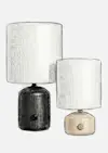 The Ceramic Table Lamp features a matte ceramic base, cotton and linen shade and diffuser, and monochromatic hardware.