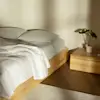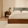 The purest form of the platform bed, with clean lines and a continuous design. Interior Japanese joinery and hand screws provide a smooth look and streamlined set-up. Crafted from solid, upcycled wood. Mattress sold separately.