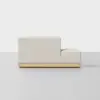 The Essential Chaise Sectional balances aesthetic refinement with enduring comfort. An exposed, upcycled wood base features Japanese joinery details, while generously padded integrated cushions maintain a loungeable taper and provide resilient comfort. Upholstered in premium performance fabrics selected for their texture and longevity. Innovative design composed of separate wood base and nesting seat units. Clip connection system ensures effortless reconfiguration.