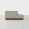 The Essential Island Chaise Sectional balances aesthetic refinement with enduring comfort. An exposed, upcycled wood base features Japanese joinery details, while generously padded integrated cushions maintain a loungeable taper and provide resilient comfort. Upholstered in premium performance fabrics selected for their texture and longevity. Innovative design composed of separate wood base and nesting seat units. Clip connection system ensures effortless reconfiguration.