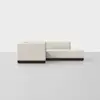The Essential L Island Sectional balances aesthetic refinement with enduring comfort. An exposed, upcycled wood base features Japanese joinery details, while generously padded integrated cushions maintain a loungeable taper and provide resilient comfort. Upholstered in premium performance fabrics selected for their texture and longevity. Innovative design composed of separate wood base and nesting seat units. Clip connection system ensures effortless reconfiguration.