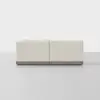 The Essential L  Sectional balances aesthetic refinement with enduring comfort. An exposed, upcycled wood base features Japanese joinery details, while generously padded integrated cushions maintain a loungeable taper and provide resilient comfort. Upholstered in premium performance fabrics selected for their texture and longevity. Innovative design composed of separate wood base and nesting seat units. Clip connection system ensures effortless reconfiguration.