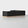 The Essential L  Sectional balances aesthetic refinement with enduring comfort. An exposed, upcycled wood base features Japanese joinery details, while generously padded integrated cushions maintain a loungeable taper and provide resilient comfort. Upholstered in premium performance fabrics selected for their texture and longevity. Innovative design composed of separate wood base and nesting seat units. Clip connection system ensures effortless reconfiguration.