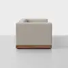 The Essential Modular Sofa balances aesthetic refinement with enduring comfort. An exposed, upcycled wood base features Japanese joinery details, while generously padded integrated cushions maintain a loungeable taper and provide resilient comfort. Upholstered in premium performance fabrics selected for their texture and longevity. Innovative design composed of separate wood base and nesting seat units. Clip connection system ensures effortless reconfiguration.