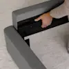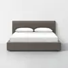 The first fully upholstered bed in the collection, the Signature Bed, brings a softer side to the bedroom. The interior frame, painted black for sleek uniformity, utilizes solid wood Japanese joinery for exceptional stability. The Signature Headboard is specifically designed for leaning and lounging, with an ergonomic taper that adds a refined yet expressive aesthetic element. Its rounded top offers comfortable support, a continuation of clean lines born of utility. All-over cushioning, rounded corners, premium upholstery, and a generous mattress inset create an enveloping experience, one of effortless hospitality.