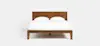 A feat of streamlined design, the Essential Bed’s aesthetic hallmark is its continuous and subtly curved frame, crafted from solid, upcycled rubberwood. Interior Japanese joinery and hand screws provide a smooth look and streamlined set-up. With the frame nearly flush against the floor and an approximate 2” mattress inset, the Essential Bed embodies grounded minimalism.