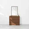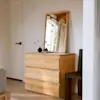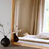 Minimalist design meets sculptural form in the Cove Mirror, a room-enhancing essential that brings an airy, expansive quality to any space. Its solid wood frame is sleek yet defined with rounded corners and cove molding for subtle architectural dimension. Available in two versatile sizes that can lean against or hang on a wall.