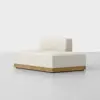 The Custom Essential Sectional balances aesthetic refinement with enduring comfort. An exposed, upcycled wood base features Japanese joinery details, while generously padded integrated cushions maintain a loungeable taper and provide resilient comfort. Upholstered in premium performance fabrics selected for their texture and longevity. Innovative design composed of separate wood base and nesting seat units. Clip connection system ensures effortless reconfiguration.