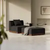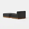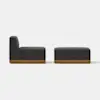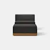 The Essential Armless Chair balances aesthetic refinement with enduring comfort. An exposed, upcycled wood base features Japanese joinery details, while generously padded integrated cushions maintain a loungeable taper and provide resilient comfort. Upholstered in premium performance fabrics selected for their texture and longevity. Innovative design composed of separate wood base and nesting seat units.