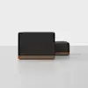 The Essential Chaise Sectional balances aesthetic refinement with enduring comfort. An exposed, upcycled wood base features Japanese joinery details, while generously padded integrated cushions maintain a loungeable taper and provide resilient comfort. Upholstered in premium performance fabrics selected for their texture and longevity. Innovative design composed of separate wood base and nesting seat units. Clip connection system ensures effortless reconfiguration.
