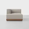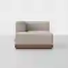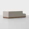 The Essential Island Sofa balances aesthetic refinement with enduring comfort. An exposed, upcycled wood base features Japanese joinery details, while generously padded integrated cushions maintain a loungeable taper and provide resilient comfort. Upholstered in premium performance fabrics selected for their texture and longevity. Innovative design composed of separate wood base and nesting seat units. Clip connection system ensures effortless reconfiguration.