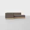 The Essential L Island Sectional balances aesthetic refinement with enduring comfort. An exposed, upcycled wood base features Japanese joinery details, while generously padded integrated cushions maintain a loungeable taper and provide resilient comfort. Upholstered in premium performance fabrics selected for their texture and longevity. Innovative design composed of separate wood base and nesting seat units. Clip connection system ensures effortless reconfiguration.