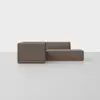 The Essential L Island Sectional balances aesthetic refinement with enduring comfort. An exposed, upcycled wood base features Japanese joinery details, while generously padded integrated cushions maintain a loungeable taper and provide resilient comfort. Upholstered in premium performance fabrics selected for their texture and longevity. Innovative design composed of separate wood base and nesting seat units. Clip connection system ensures effortless reconfiguration.