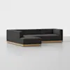 The Essential L Island Sectional balances aesthetic refinement with enduring comfort. An exposed, upcycled wood base features Japanese joinery details, while generously padded integrated cushions maintain a loungeable taper and provide resilient comfort. Upholstered in premium performance fabrics selected for their texture and longevity. Innovative design composed of separate wood base and nesting seat units. Clip connection system ensures effortless reconfiguration.