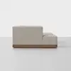 The Essential U Chaise Sectional balances aesthetic refinement with enduring comfort. An exposed, upcycled wood base features Japanese joinery details, while generously padded integrated cushions maintain a loungeable taper and provide resilient comfort. Upholstered in premium performance fabrics selected for their texture and longevity. Innovative design composed of separate wood base and nesting seat units. Clip connection system ensures effortless reconfiguration.