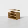 Modular design made simple. The Nest Shelf provides open-air space for essentials and is made from 100% upcycled wood. Add to an existing configuration with a Nest Base Shelf or Nest Stacking Shelf, for fully customizable, adaptive organization. Remove shelf, as desired. Do not stack more than 2 shelves or 47" vertically.