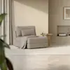 The Signature Armless Chair is the epitome of comfort and loungeability, with an enveloping feel that encourages ease and relaxation. Cushions are feather-filled, with foam, steel pocket springs, and polyfiber for added shape and resilience. Fully upholstered in premium performance fabrications selected for texture and longevity.